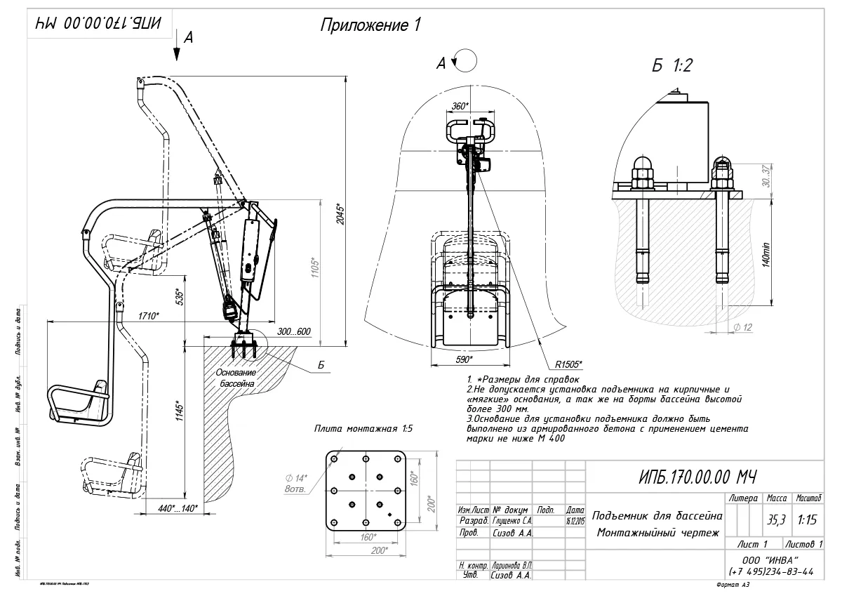 Технические характеристики подъемника для бассейна для инвалидов "ЕНИСЕЙ" ИПБ-170Э