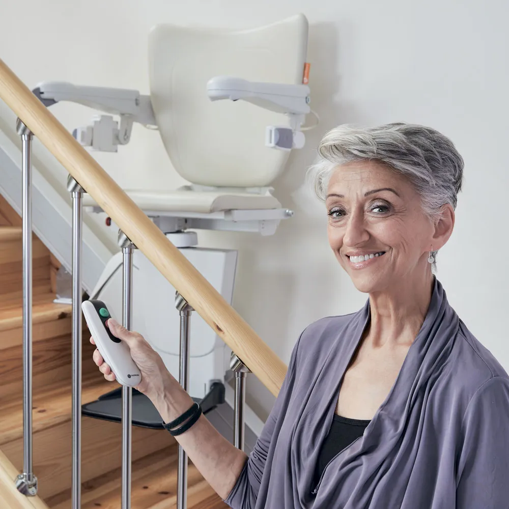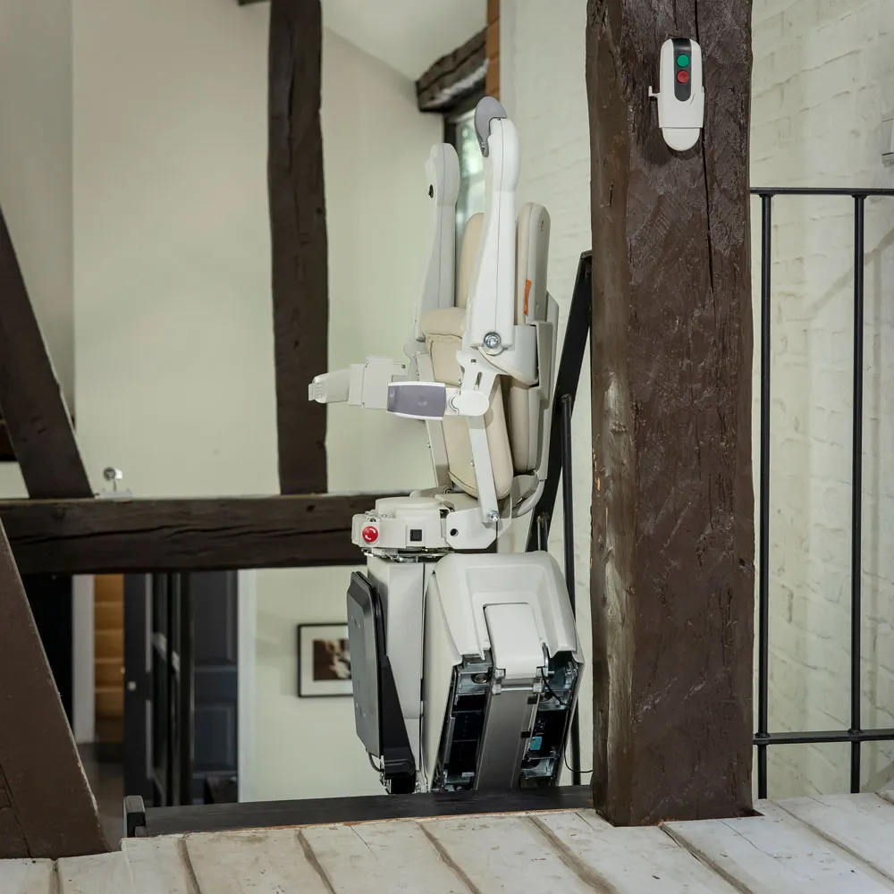 Возможность независимого складывания подлокотников, сиденья и подножки позволяет максимально экономично использовать пространство лестницы, а также упрощает процесс посадки/высадки пользователя.