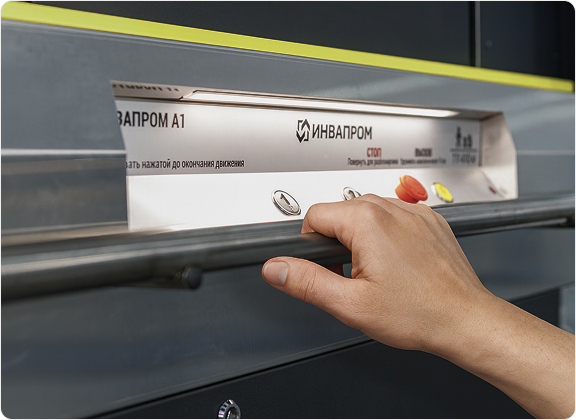 ИНВАПРОМ А1 понятен с первого нажатия и комфортен в ежедневной эксплуатации. Плавный ход, тихая работа и продуманные детали снижают усталость и стресс пользователей.