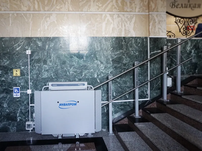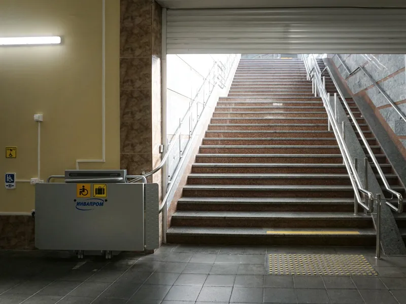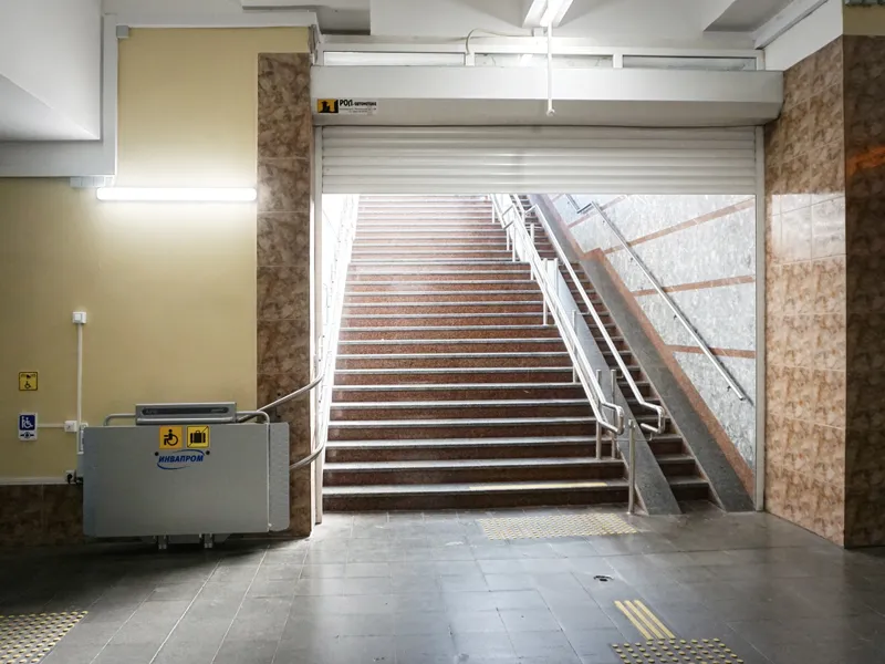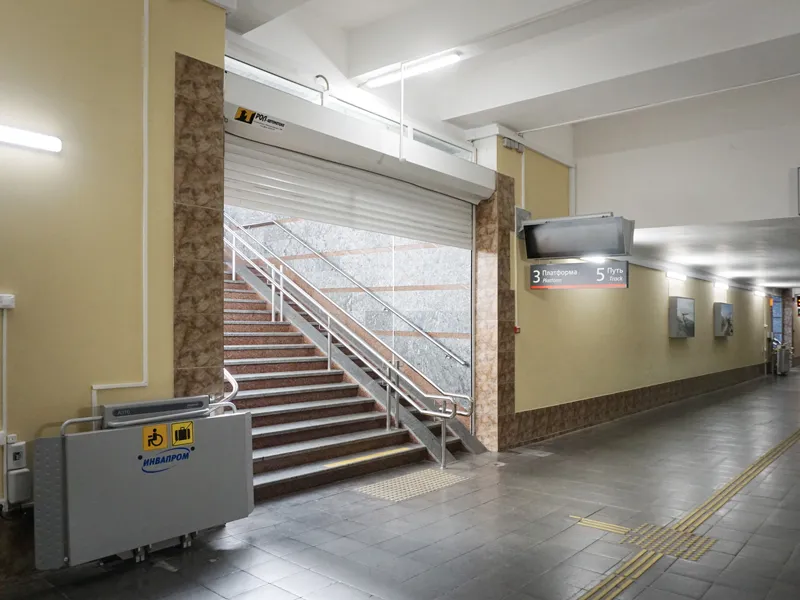 Благодаря установке наклонных подъемников ИНВАПРОМ А310, главный тоннель выхода на платформы № 1,2,3,4 и 5 отвечает требованиям доступности маломобильных пассажиров.